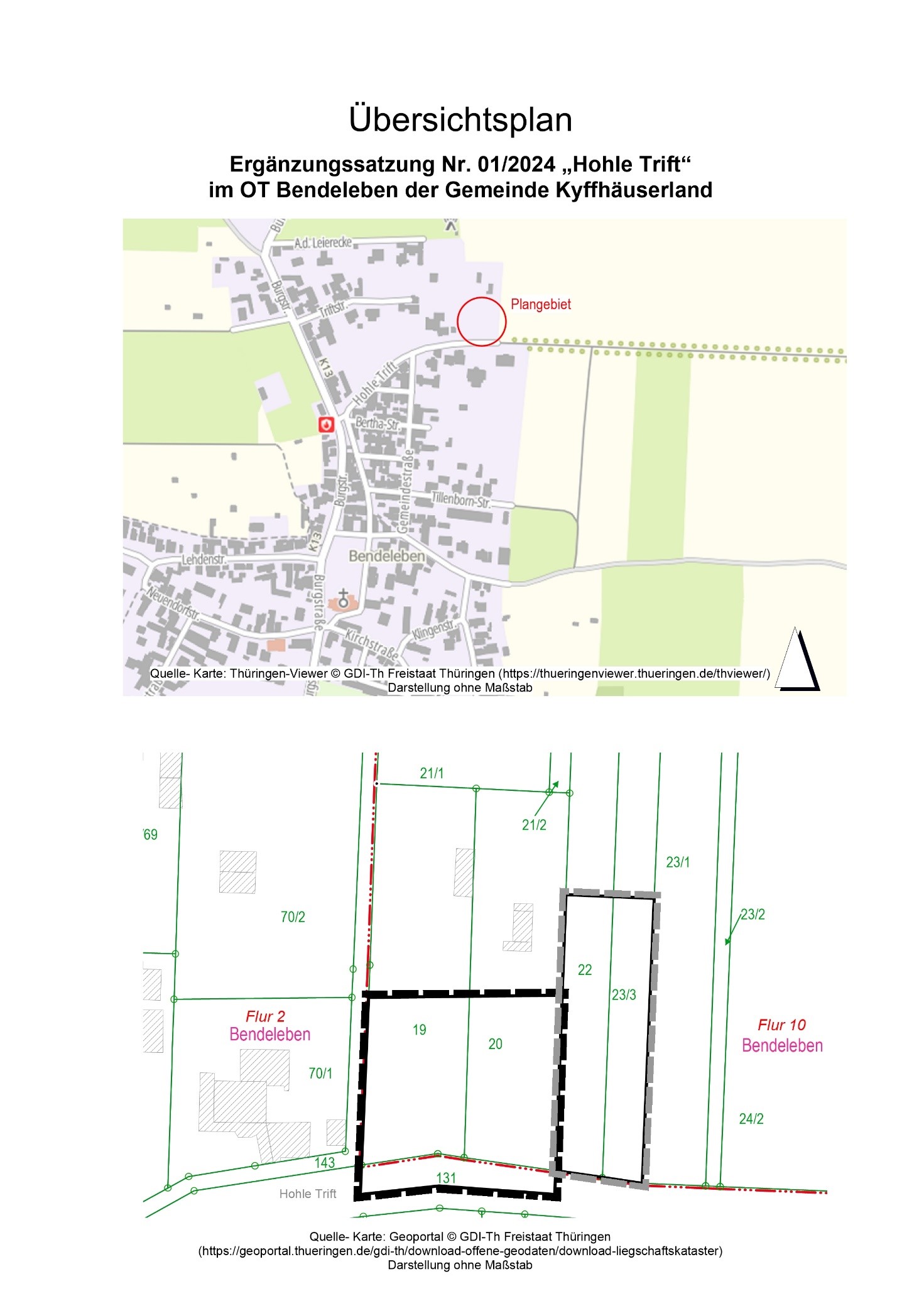 Planverfahren zur Aufstellung der Ergänzungssatzung Nr. 01/2024 „Hohle Trift“ im OT Bendeleben der Gemeinde Kyffhäuserland gemäß § 34 (4) Nr. 3 BauGB